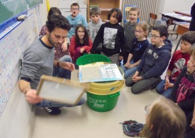 Tous les jeudis, les GS et les CP font les sciences avec Camille. Depuis peu ils ont commencé le chapitre “Laissons revivre les petits papiers”, il consiste à fabriquer des feuilles de papier recyclé à partir de papier journal. Les élèves sont enchantés de fabriquer quelque chose de leurs mains. Tout d’abord, ils ont découvert le parcours du papier avant d’être recyclé. Ensuite, ils ont déchiré des feuilles de papier journal avant de les tremper dans de l’eau pour obtenir une sorte de pâte de papier. Par la suite, ils ont fabriqué les feuilles en utilisant un tamis. Ils pouvaient agrémenter leurs feuilles avec de la peinture pour apporter un peu de couleur. Ce projet est très motivant pour les élèves qui prennent plaisir à faire les choses.